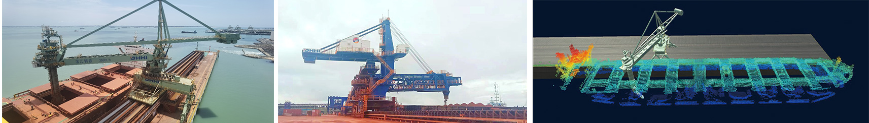 該系統具備船型掃描實時成像、多種船型定位識別、艙內取料智能決策、三維可視化場景還原等功能,相比其他散貨船型識別算法通用性更強,基于設備運動學模型、有限元模型,構建了融合幾十種取料工藝策略的決策分析系統,形成多目標優化后的取料工藝策略,艙內智能化取料覆蓋率可達80%以上。另外,VR仿真平臺可實現工藝虛擬仿真,大幅減少現場調試時間。