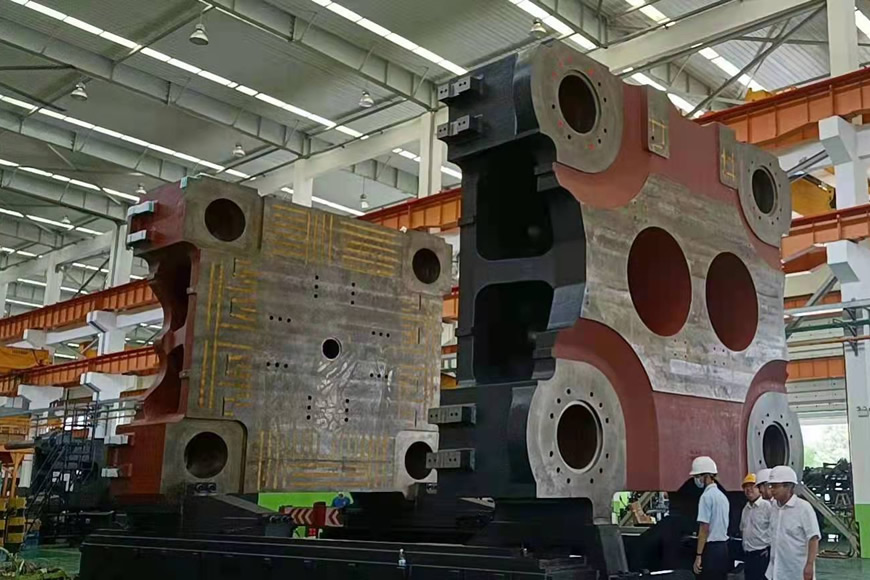 注塑機是利用塑料成型模具將熱塑性塑料或熱固性塑料制成各種形狀的塑料制品的成型設備,能滿足航空航天、工程機械等領域對超大型制品的需求。大型球墨鑄鐵模板是注塑機的關鍵部件。大連重工是國內少數(shù)幾家能夠研制該類產品的企業(yè),產品型號涵蓋了244-8500噸鎖模力多種系列,成功為歐洲、北美及國內客戶研制了6600噸級至8500噸級多型號注塑機模板,為我國大型注塑機產業(yè)發(fā)展提供了強有力的裝備技術支撐。